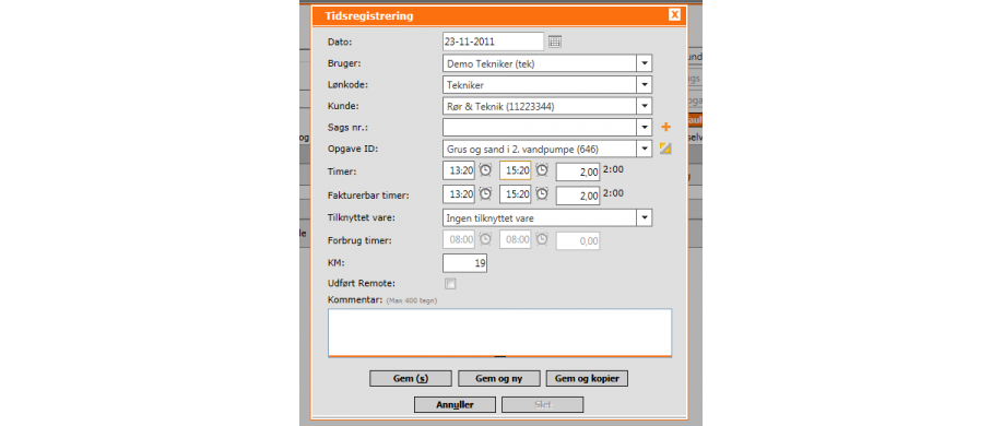 I dagligt brug, skal jeres teknikere ikke registrere deres tid i et seperat system. Registreringen sker direkte på opgaven som teknikeren har fået uddelegeret af Qmanager, via Opgavestyring.